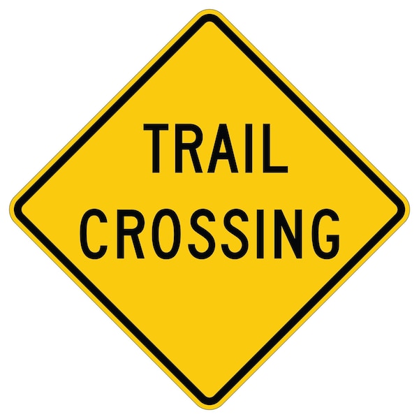 Trail Crossing 30X30 Diamond Grade Cubed Reflective .125 Aluminum Thickness - Sign Spec's: MUTCD:, W11-15a, Sign Category:, Warning, Header/Legend:, Trail Crossing, Legend, Text Color:, Black, Background Color:, Yellow, Aluminum Grade & Temper:, 5052-H38, Hole Punch Pattern:, Federal Punch: 2 Holes T&B Centered, 30 Center, Hole Diameter: 7/16 , Hole Punch Shape:, Round, Radius Corners: , 1-7/8