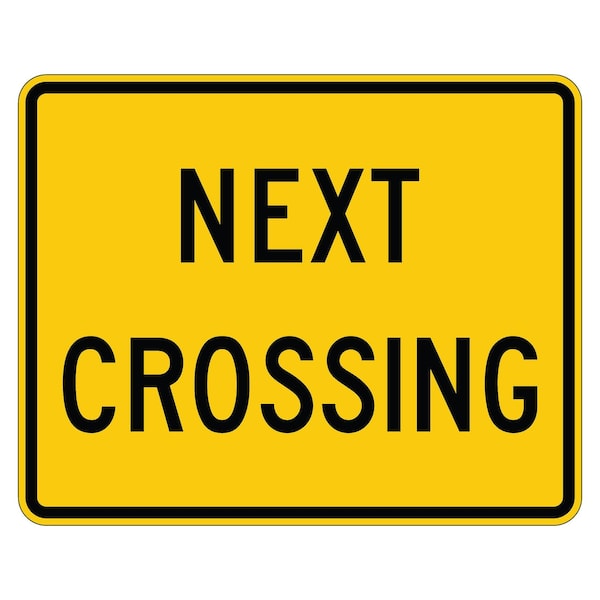 Next Crossing 30X24 Diamond Grade Cubed Reflective .063 Aluminum Thickness - Sign Spec's: MUTCD:, W10-14P, Sign Category:, Warning, Header/Legend:, Next Crossing, Legend, Text Color:, Black, Background Color:, Yellow, Aluminum Grade & Temper:, 5052-H38, Hole Punch Pattern:, Federal Punch: 2 Holes T&B Centered, 3 inset, Hole Diameter: 7/16 , Hole Punch Shape:, Round, Radius Corners: , 1.5