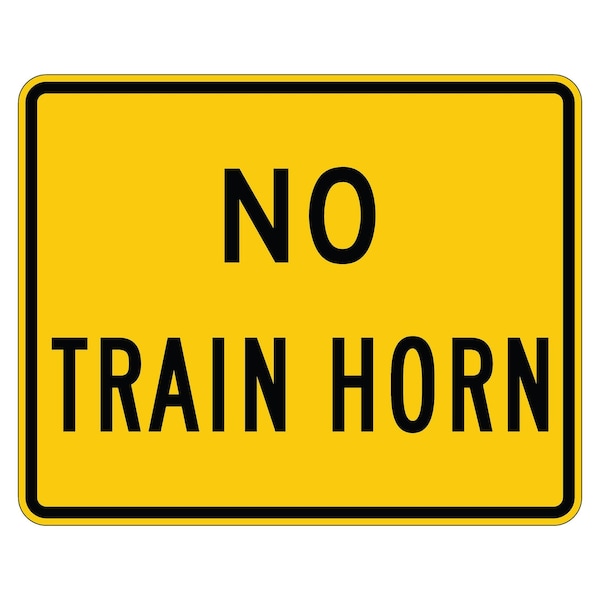 No Train Horn 30X24 Diamond Grade Cubed Reflective .063 Aluminum Thickness - Sign Spec's: MUTCD:, W10-9P, Sign Category:, Warning, Header/Legend:, No Train Horn, Legend, Text Color:, Black, Background Color:, Yellow, Aluminum Grade & Temper:, 5052-H38, Hole Punch Pattern:, Federal Punch: 2 Holes T&B Centered, 3 inset, Hole Diameter: 7/16 , Hole Punch Shape:, Round, Radius Corners: , 1.5