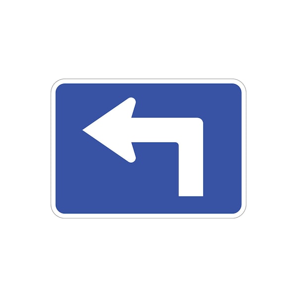 Advance Left Turn Arrow 30X21 Diamond Grade Cubed Reflective .063 Aluminum Thickness - Sign Spec's: MUTCD:, M5-1LINT, Sign Category:, Route Marker, Header/Legend:,, Symbol Advance Left Turn Arrow, Legend, Text Color:, Blue, Background Color:, White, Aluminum Grade & Temper:, 5052-H38, Hole Punch Pattern:, Federal Punch: 2 Holes T&B Centered, 1.5 inset, Hole Diameter: 7/16 , Hole Punch Shape:, Round, Radius Corners: , 1-7/8