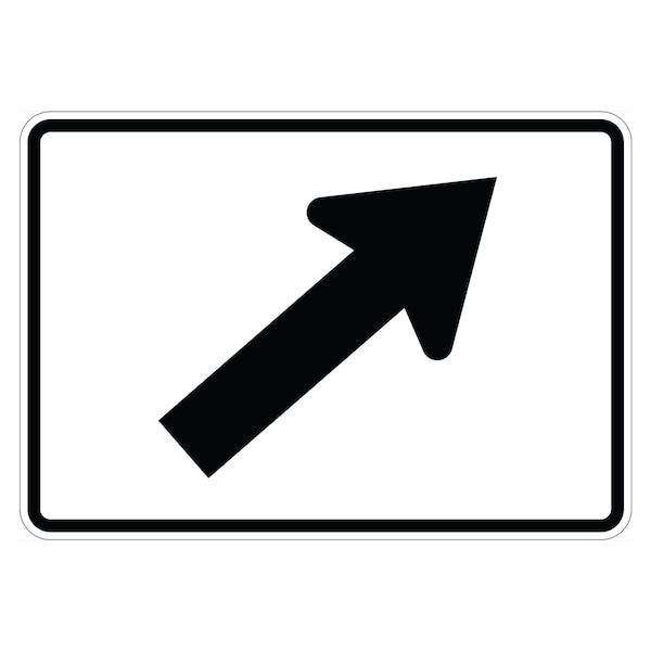 Diagonal Turn Arrow Right 30X21 Diamond Grade Cubed Reflective .063 Aluminum Thickness - Sign Spec's: MUTCD:, M6-2R, Sign Category:, Route Marker, Header/Legend:, Diagonal Turn Arrow, Symbol Right, Legend, Text Color:, Black, Background Color:, White, Aluminum Grade & Temper:, 5052-H38, Hole Punch Pattern:, Federal Punch: 2 Holes T&B Centered, 1.5 inset, Hole Diameter: 7/16 , Hole Punch Shape:, Round, Radius Corners: , 1-7/8