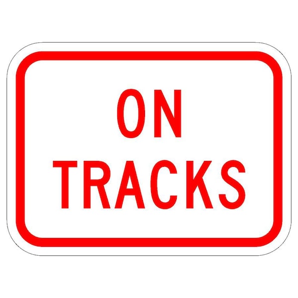On Tracks 30X24 Diamond Grade Cubed Reflective .100 Aluminum Thickness - Sign Spec's: MUTCD:, R8-3eP, Sign Category:, Regulatory, Header/Legend:, On Tracks, Legend, Text Color:, Red, Background Color:, White, Aluminum Grade & Temper:, 5052-H38, Hole Punch Pattern:, Federal Punch: 2 Holes T&B Centered, 3 inset, Hole Diameter: 7/16 , Hole Punch Shape:, Round, Radius Corners: , 1.5