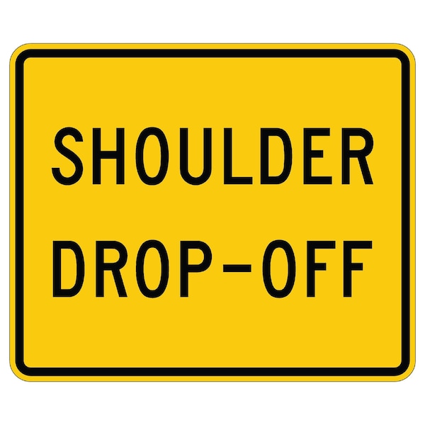 Shoulder Drop Off 30X24 Work Zone Fluorescent Reflective, WZ FLO .100 Aluminum Thickness - Sign Spec's: MUTCD:, W8-17P, Sign Category:, Temporary Traffic Control, Construction, Header/Legend:, Shoulder Drop-Off, Legend, Text Color:, Black, Background Color:, Fluorescent Orange, Aluminum Grade & Temper:, 5052-H38, Hole Punch Pattern:, Federal Punch: 2 Holes T&B Centered, 3 inset, Hole Diameter: 7/16 , Hole Punch Shape:, Round, Radius Corners: , 1.5