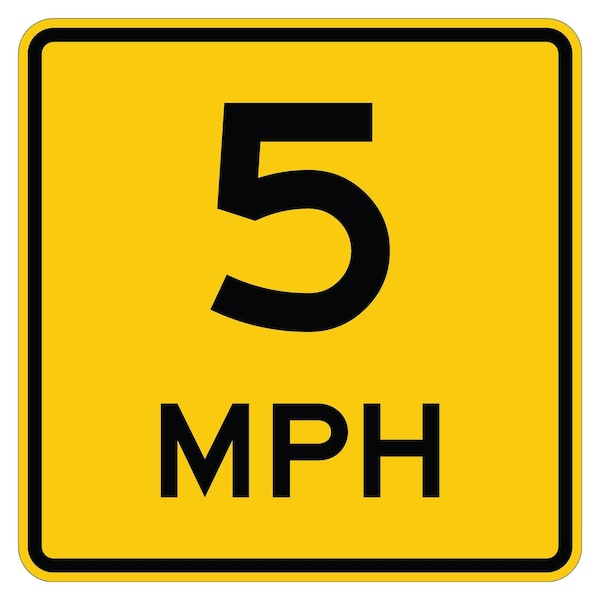 5 MPH 30X30 Diamond Grade Cubed Reflective .063 Aluminum Thickness - Sign Spec's: MUTCD:, W13-1P5, Sign Category:, Warning, Header/Legend:, 5 M.P.H, Legend, Text Color:, Black, Background Color:, Yellow, Aluminum Grade & Temper:, 5052-H38, Hole Punch Pattern:, Federal Punch: 2 Holes T&B Centered, 3 inset, Hole Diameter: 7/16 , Hole Punch Shape:, Round, Radius Corners: , 1-7/8