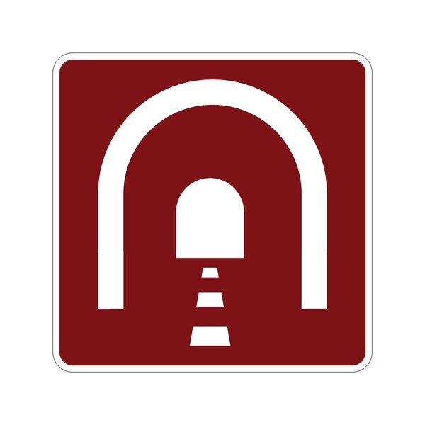 Tunnel 30X30 Diamond Grade Cubed Reflective .100 Aluminum Thickness - Sign Spec's: MUTCD:, RS-005, Sign Category:, Recreational , Header/Legend:, Tunnel, Symbol, Legend, Text Color:, White, Background Color:, Brown, Aluminum Grade & Temper:, 5052-H38, Hole Punch Pattern:, Federal Punch: 2 Holes T&B Centered, 3 inset, Hole Diameter: 7/16 , Hole Punch Shape:, Round, Radius Corners: , 1-7/8