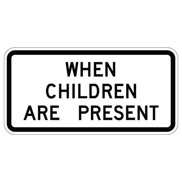 When Children Are Present 36X18 High Intensity Prismatic Reflective .063 Aluminum Thickness - Sign Spec's: MUTCD:, S4-2P, Sign Category:, School, Header/Legend:, When Children Are Present, Legend, Text Color:, Black, Background Color:, White, Aluminum Grade & Temper:, 5052-H38, Hole Punch Pattern:, Federal Punch: 4 Holes, 2 Post Mount T&B Inset 3, L&R Inset 6, Hole Diameter: 7/16 , Hole Punch Shape:, Round, Radius Corners: , 2.25