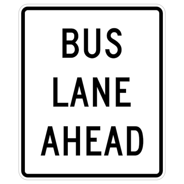 Bus Lane Ahead 36X48 Diamond Grade Cubed Reflective .063 Aluminum Thickness - Sign Spec's: MUTCD:, R3-12F, Sign Category:, Regulatory, Header/Legend:, Bus Lane Ahead, Legend, Text Color:, Black, Background Color:, White, Aluminum Grade & Temper:, 5052-H38, Hole Punch Pattern:, Federal Punch: 4 Holes, 2 Post Mount T&B Inset 6, L&R Inset 6, Hole Diameter: 7/16 , Hole Punch Shape:, Round, Radius Corners: , 2.25