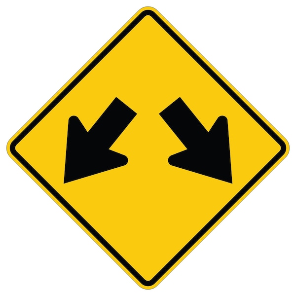 Double Arrow 48X48 Diamond Grade Cubed Fluorescent Reflective .125 Aluminum Thickness - Sign Spec's: MUTCD:, W12-1, Sign Category:, Temporary Traffic Control, Construction, Header/Legend:, Double Arrow Symbol , Legend, Text Color:, Black, Background Color:, Fluorescent Orange, Aluminum Grade & Temper:, 5052-H38, Hole Punch Pattern:, Federal Punch: 4 Holes, 2 Post Mount T&B Inset 15, L&R Inset 15 from Centers, Hole Diameter: 7/16 , Hole Punch Shape:, Round, Radius Corners: , 3