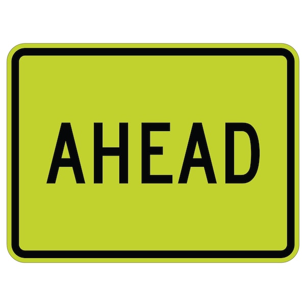 AHEAD 48X36 Diamond Grade Cubed Fluorescent Reflective .100 Aluminum Thickness - Sign Spec's: MUTCD:, W16-9p, Sign Category:, School, Header/Legend:, AHEAD, Legend, Text Color:, Black, Background Color:, Fluorescent Yellow Green, Aluminum Grade & Temper:, 5052-H38, Hole Punch Pattern:, Federal Punch: 4 Holes, 2 Post Mount T&B Inset 6, L&R Inset 9, Hole Diameter: 7/16 , Hole Punch Shape:, Round, Radius Corners: , 2.25