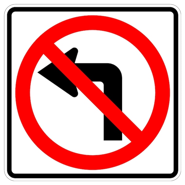 No Left Turn 48X48 Diamond Grade Cubed Reflective .063 Aluminum Thickness - Sign Spec's: MUTCD:, R3-2, Sign Category:, Regulatory, Header/Legend:, No Left Turn, Legend, Text Color:, Red & Black, Background Color:, White, Aluminum Grade & Temper:, 5052-H38, Hole Punch Pattern:, Federal Punch: 4 Holes, 2 Post Mount T&B Inset 6, L&R Inset 9, Hole Diameter: 7/16 , Hole Punch Shape:, Round, Radius Corners: , 3