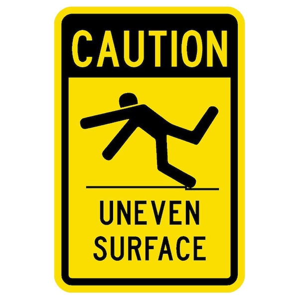 Caution Uneven Surface 08X12 Diamond Grade Cubed Reflective .100 Aluminum Thickness - Sign Spec's: MUTCD:, CUS00119, Sign Category:, Specialty, Header/Legend:, Caution Uneven Surface, Legend, Text Color:, Black, Background Color:, Yellow, Aluminum Grade & Temper:, 5052-H38, Hole Punch Pattern:, Federal Punch: 2 Holes T&B Centered, 1.5 inset, Hole Diameter: 7/16 , Hole Punch Shape:, Round, Radius Corners: , .50