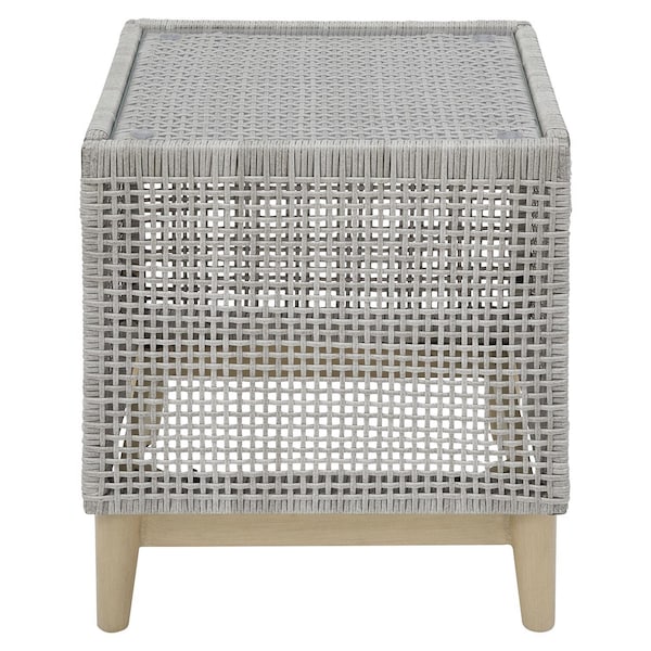 This end table invites your casual contemporary style outdoors. With its resin wicker in a chic neutral hue it expertly marries refined design with durability. Breezy summer mornings and cold winter nights are made all the more enjoyable with a glass tabletop on hand to hold beverages snacks and your latest poolside read.