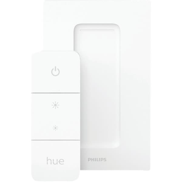 Wireless dimmer switch features dimming control without the hassle of installation and rewiring. Contains 1 wireless dimmer switch and 1 CR2450 battery. Up to 10 Hue bulbs can be added to the system. Simply screw a Hue light bulb into any existing medium base fixture and the dimmer will control that fixture. Back plate of dimmer switch can be mounted to a wall if desired. Dimmer switch is magnetic and can be removed from the back plate which allows it to be used as a remote control with a range of up to 40 feet. Also compatible with the Philips Hue Bridge and other Philips Hue family accessories. CSA (Canadian Standards Association) and UL (Underwriters Laboratories) listed.