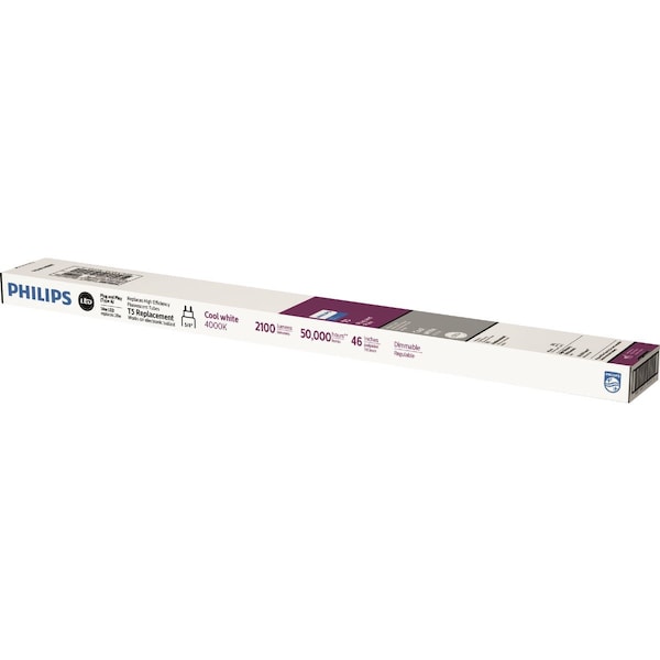 Philips InstantFit LED tubes easily replace fluorescent T5 tubes operated on instant-start electronic ballasts no rewiring needed. This glass LED linear bulb looks and feels like fluorescent and has a daylight effect and long lifetime.