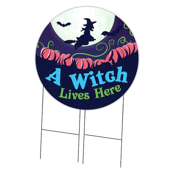 A Witch Lives Here Double Sided Corrugated Plastic Circle Yard Sign