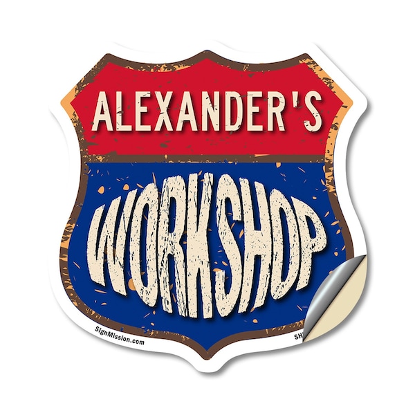 Add a Fun, Personalized Touch to Your Workshop with SignMission's Custom Shield-Shaped Vinyl Decals Make your Workshop stand out with a decal that's not just eye-catching, but also full of personality! Our shield-shaped vinyl decals are the perfect way to add a touch of fun and style to your space. Featuring your name and a sleek, bold design, these decals bring a modern, professional vibe to any Workshop, workshop, or man cave. With their vibrant look and high-quality vinyl construction, they'll grab attention and give your space that extra bit of flair for years to come. Bring Durable Style to Your Workshop Our shield-shaped decals are designed with premium 3M UV-protected, weather-resistant vinyl to ensure a long-lasting finish. Perfect for indoor and outdoor use, these decals are resistant to fading, cracking, and peeling. With an easy peel-and-stick application, you can quickly add your personalized touch to walls, doors, windows, or toolboxes. Wherever you place it, this decal adds character and charm that will stand the test of time.