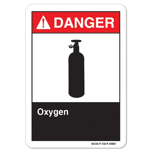 ANSI Danger, Decal, 10" x 7", Landscape, Oxygen, Oxygen