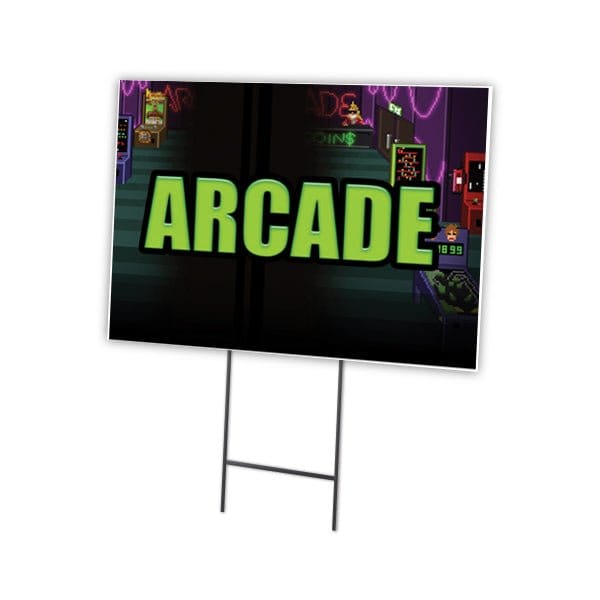 Arcade Yard Sign & Stake outdoor plastic coroplast window, C-1824-DS-Arcade