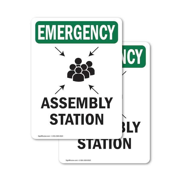 Assembly Station With Symbol, 7 in W x Rectangle, Vinyl Decal