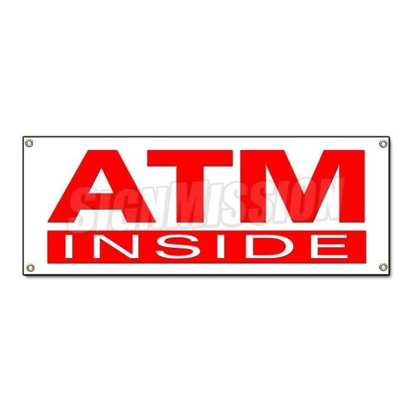 ATM INSIDE BANNER SIGN cash machine money automatic teller machine bank card