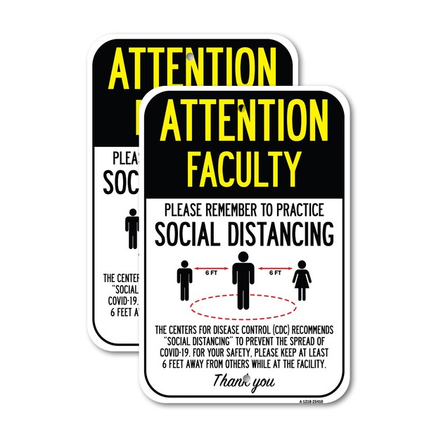 Attention Faculty Practice Social Distancing, 12'' X 18'' 2 Signs, Heavy Gauge Aluminum, 2PK