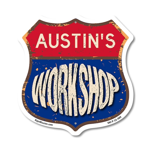 Add a Fun, Personalized Touch to Your Workshop with SignMission's Custom Shield-Shaped Signs Make your Workshop stand out with a sign that's not just eye-catching, but also full of personality! Our shield-shaped signs are the perfect way to add a touch of fun and style to your space. Featuring your name and a sleek, polished design, these signs are crafted to bring a modern, professional vibe to any Workshop, workshop, or man cave. With their bold look and durable commercial-grade plastic construction, they'll grab attention and give your space that extra bit of flair for years to come. Bring Modern Durability to Your Workshop Our shield-shaped signs aren't just stylish-they're designed with long-lasting, commercial-grade plastic that ensures both a sleek finish and unbeatable durability. Perfect for any indoor or outdoor space, these signs are resistant to cracking, fading, and weather damage. They come with pre-drilled holes for easy mounting, so you can display them effortlessly wherever they look best. Give your Workshop a polished and timeless appeal with a sign that combines charm and toughness. Our shield-shaped signs are expertly crafted to bring both style and resilience to your space while featuring your personalized touch.