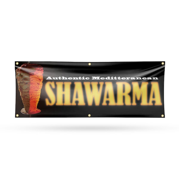 Authentic Mediterranean Shawarma, 24 Inch x 72 Inch, Vinyl Banner