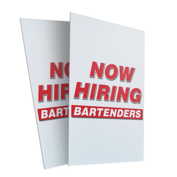 - • Bartenders (2-PACK) 24" x 36" Plastic Signs.
