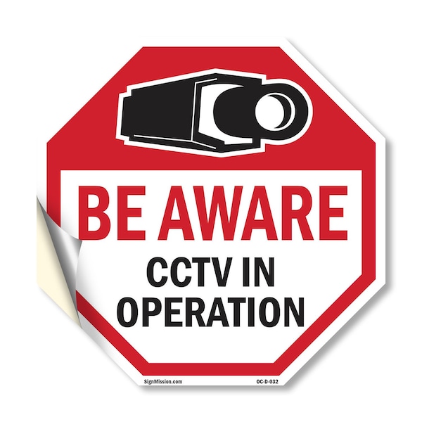 Be Aware CCTV In Operation, 10 Inch X 10 Inch, Vinyl Decal