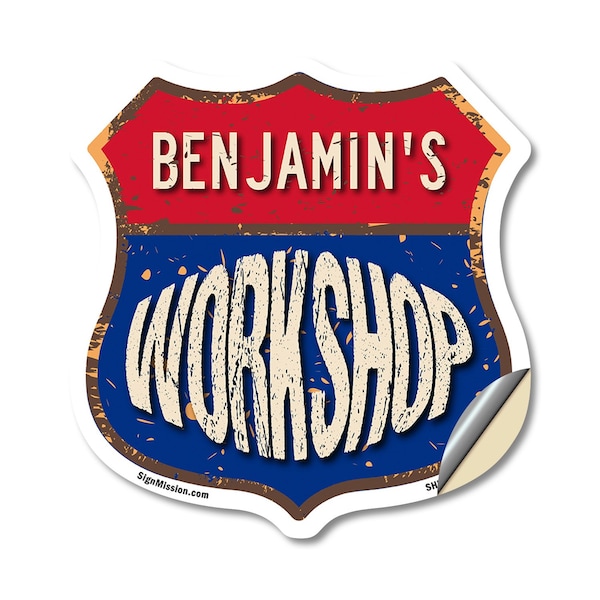 Add a Fun, Personalized Touch to Your Workshop with SignMission's Custom Shield-Shaped Vinyl Decals Make your Workshop stand out with a decal that's not just eye-catching, but also full of personality! Our shield-shaped vinyl decals are the perfect way to add a touch of fun and style to your space. Featuring your name and a sleek, bold design, these decals bring a modern, professional vibe to any Workshop, workshop, or man cave. With their vibrant look and high-quality vinyl construction, they'll grab attention and give your space that extra bit of flair for years to come. Bring Durable Style to Your Workshop Our shield-shaped decals are designed with premium 3M UV-protected, weather-resistant vinyl to ensure a long-lasting finish. Perfect for indoor and outdoor use, these decals are resistant to fading, cracking, and peeling. With an easy peel-and-stick application, you can quickly add your personalized touch to walls, doors, windows, or toolboxes. Wherever you place it, this decal adds character and charm that will stand the test of time.