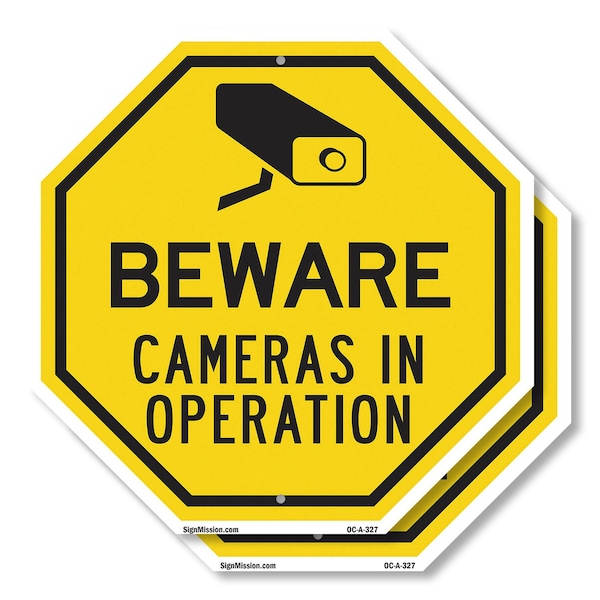 Beware Cameras in Operation, 6 inch X 6 inch, Plastic Sign, 2PK