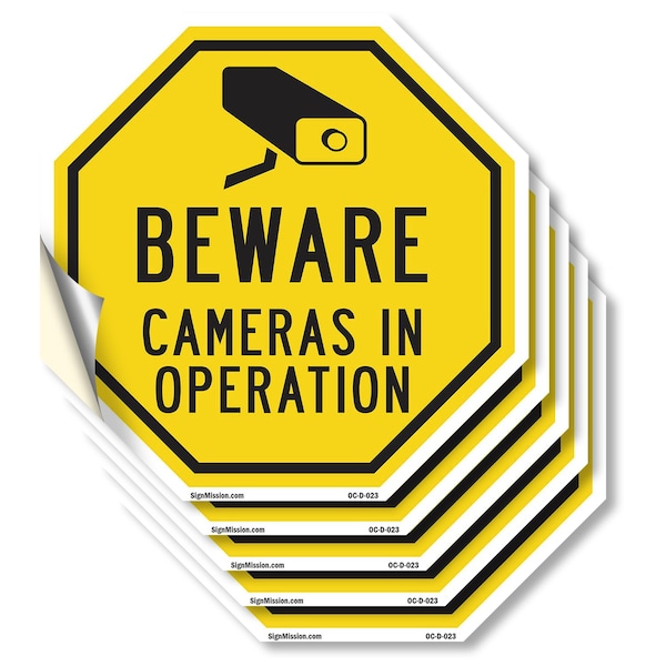 Beware Cameras in Operation, 6 inch X 6 inch, Vinyl Decal, 5PK