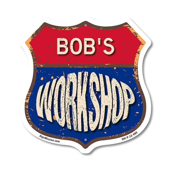 Add a Fun, Personalized Touch to Your Workshop with SignMission's Custom Shield-Shaped Signs Make your Workshop stand out with a sign that's not just eye-catching, but also full of personality! Our shield-shaped signs are the perfect way to add a touch of fun and style to your space. Featuring your name and a sleek, polished design, these signs are crafted to bring a modern, professional vibe to any Workshop, workshop, or man cave. With their bold look and durable commercial-grade plastic construction, they'll grab attention and give your space that extra bit of flair for years to come. Bring Modern Durability to Your Workshop Our shield-shaped signs aren't just stylish-they're designed with long-lasting, commercial-grade plastic that ensures both a sleek finish and unbeatable durability. Perfect for any indoor or outdoor space, these signs are resistant to cracking, fading, and weather damage. They come with pre-drilled holes for easy mounting, so you can display them effortlessly wherever they look best. Give your Workshop a polished and timeless appeal with a sign that combines charm and toughness. Our shield-shaped signs are expertly crafted to bring both style and resilience to your space while featuring your personalized touch.