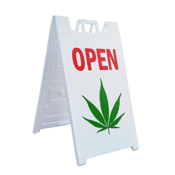 Cannabis Dispensary Open, Deluxe A-Frame & 2 Installed Decals, Heavy-Duty Plastic Frame