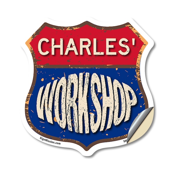 Add a Fun, Personalized Touch to Your Workshop with SignMission's Custom Shield-Shaped Vinyl Decals Make your Workshop stand out with a decal that's not just eye-catching, but also full of personality! Our shield-shaped vinyl decals are the perfect way to add a touch of fun and style to your space. Featuring your name and a sleek, bold design, these decals bring a modern, professional vibe to any Workshop, workshop, or man cave. With their vibrant look and high-quality vinyl construction, they'll grab attention and give your space that extra bit of flair for years to come. Bring Durable Style to Your Workshop Our shield-shaped decals are designed with premium 3M UV-protected, weather-resistant vinyl to ensure a long-lasting finish. Perfect for indoor and outdoor use, these decals are resistant to fading, cracking, and peeling. With an easy peel-and-stick application, you can quickly add your personalized touch to walls, doors, windows, or toolboxes. Wherever you place it, this decal adds character and charm that will stand the test of time.
