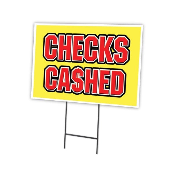 Checks Cashed Yard Sign & Stake outdoor plastic coroplast window, C-2436 Checks Cashed