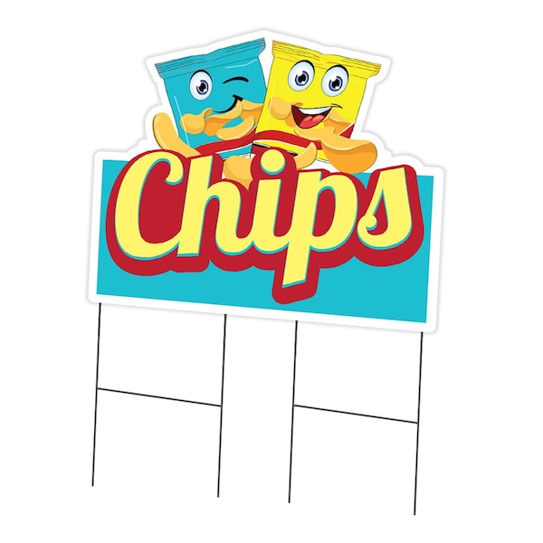 Chips Die Cut Yard Sign & Stake outdoor plastic coroplast window, C-DC-2436-Chips19