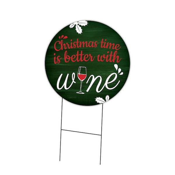 Christmas Time Is Better With Wine Corrugated Circle Yard Sign