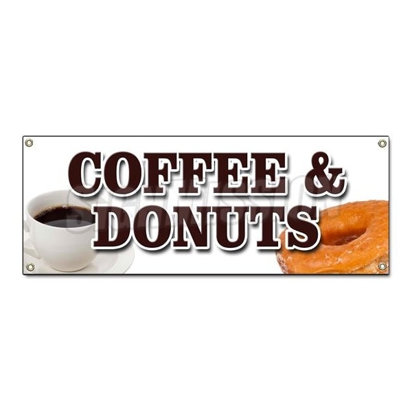 COFFEE & DONUTS BANNER SIGN warm fresh doughnuts fresh brewed iced hot