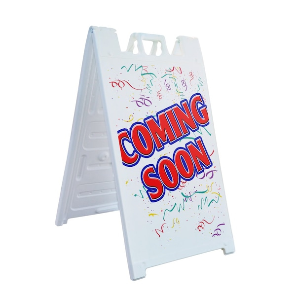 Coming Soon, A-Frame & 2 Decals Installed, Heavy-Duty Plastic Frame