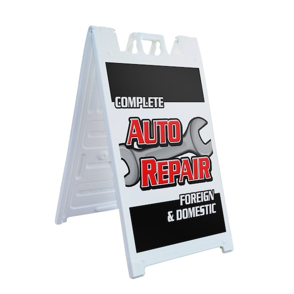 Complete Auto Repair Foreign & Domestic, A-Frame & 2 Decals Installed, Heavy-Duty Plastic Frame
