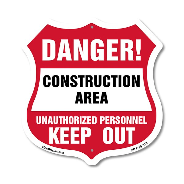 Ensure Workplace Safety with the "Construction Area" Shield Sign Keep unauthorized personnel away from hazardous areas with this Shield Sign that states, "Danger! Unauthorized Personnel Keep Out." Ideal for construction sites, warehouses, or restricted zones, this sign provides clear warnings to enhance safety and minimize risks. Rugged and Weatherproof Design Constructed from heavy-duty commercial grade polystyreneplastic, this 18 inch by 18 inch sign is resistant to rust and wear. Its fade-resistant inks and scratch-resistant UV coating maintain visibility and legibility in tough conditions. Pre-cut holes allow for secure and easy mounting on gates, fences, or walls. Bold Messaging for Maximum Impact The bold text and polished design ensure the sign is noticed and respected, helping to enforce safety protocols and compliance on work sites. Built to last, it's a trusted tool for maintaining workplace safety.
