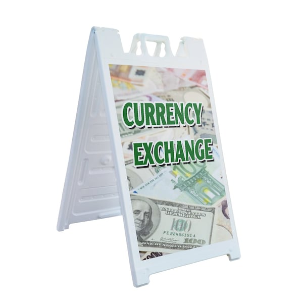 Currency Exchange, A-Frame & 2 Decals Installed, Heavy-Duty Plastic Frame