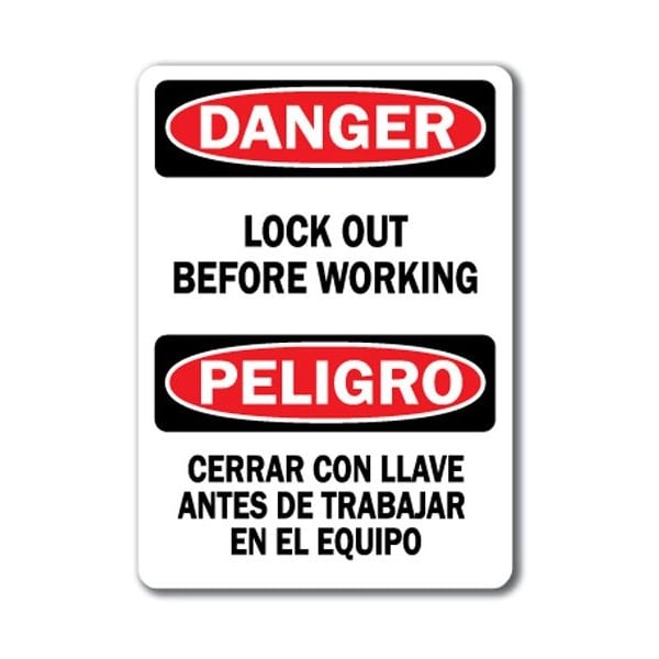 Danger-Lock Out Before Working Bilingual-10in x 14in OSHA, DS-Lock Out Before Working (Bilingual)