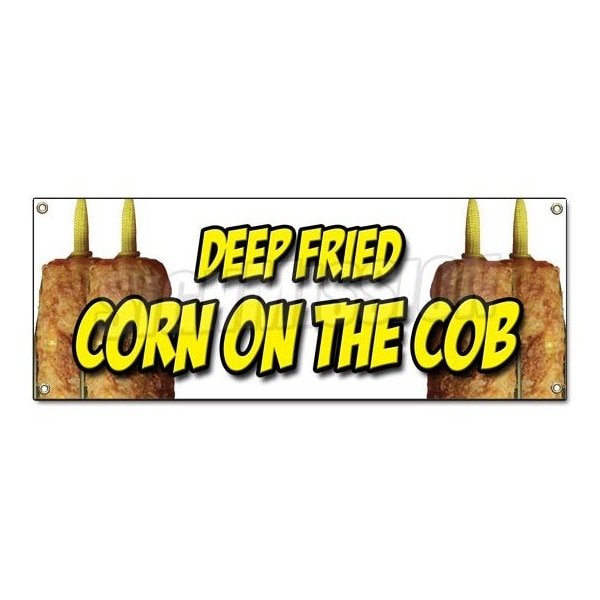 DEEP FRIED CORN ON THE COB BANNER SIGN on a stick snack cornmeal crust