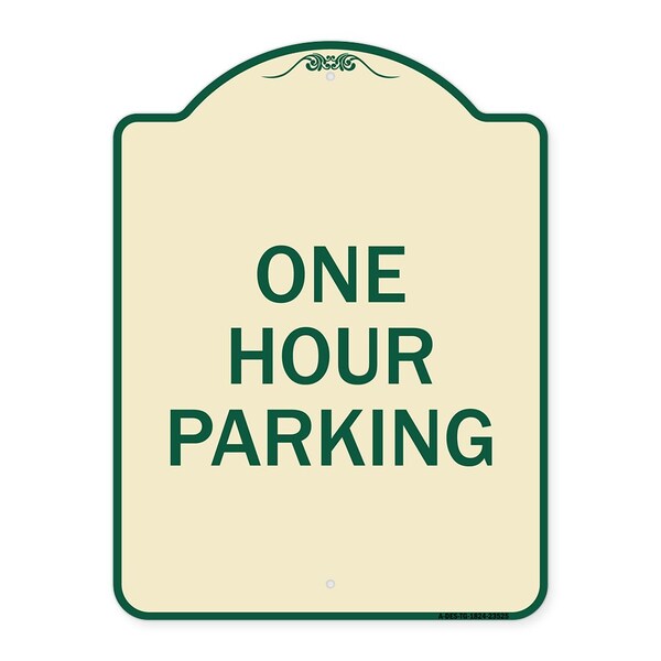 Designer Series One Hour Parking, Tan & Green Heavy-Gauge Aluminum Sign, 24" x 18", TG-1824-23525