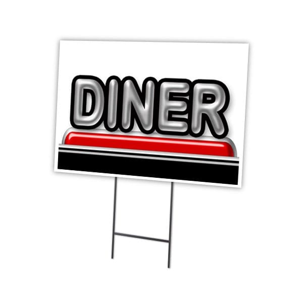 Diner Yard Sign & Stake outdoor plastic coroplast window, C-1824 Diner