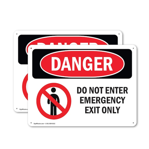 Do Not Enter Emergency Exit Only Danger Sign, Plastic, 10in W x 7in L, 2PK