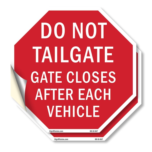 Do Not Tailgate Gate Closes After E, 4 inch X 4 inch, Vinyl Decal, 2PK