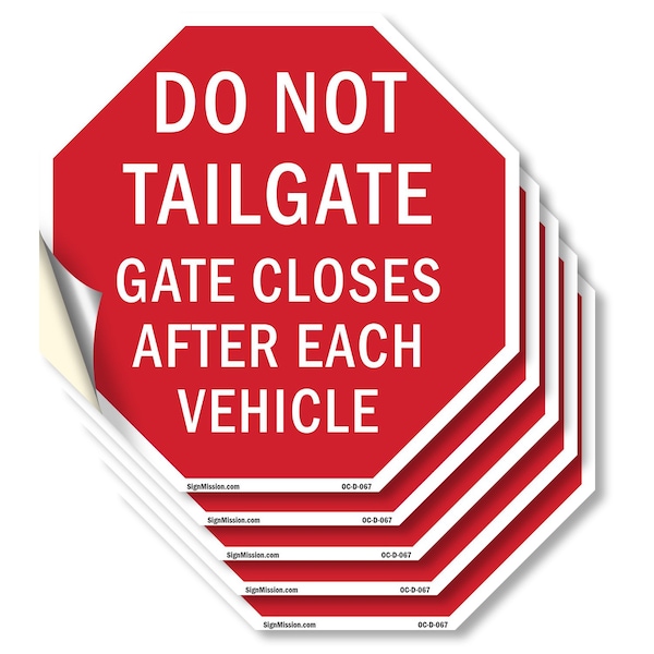 Do Not Tailgate Gate Closes After E, 4 inch X 4 inch, Vinyl Decal, 5PK